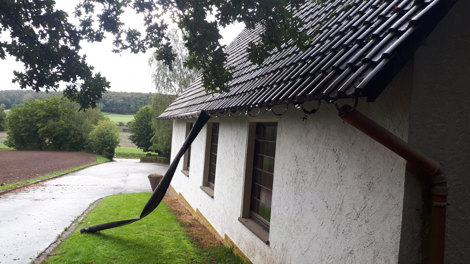 Am Montag, 26.09.2022, in der Zeit zwischen 16.00 Uhr und Dienstag 27.09.2022 9.00 Uhr wurden am Friedhofsgebäude Wendlinghausen mehrere Dachrinnen abgerissen und